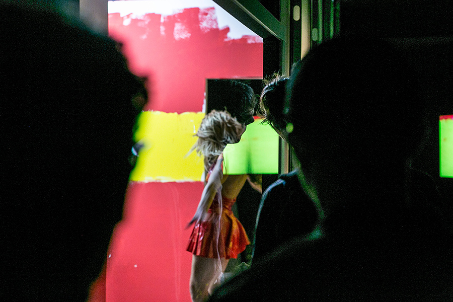 La intervención escénica, de fuerte carácter teatral y experimental, está planteada como un show de variedades en el que se suceden números delirantes, violentos y terroríficos, mezclándose piezas musicales, monólogos, bailes y sitcom. El juego entre la cámara y el show en vivo le da a la pieza un carácter multidisciplinar e híbrido que dotan al proyecto de una capa distinta a todo el trabajo anterior de la compañía y pone a prueba los límites de un espacio expositivo convencional al encontrarse con los lenguajes de las artes escénicas.